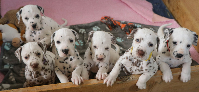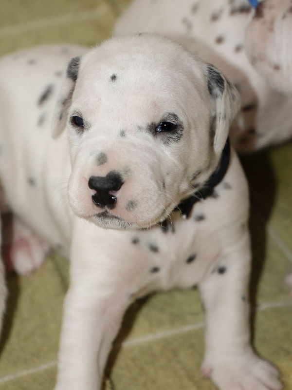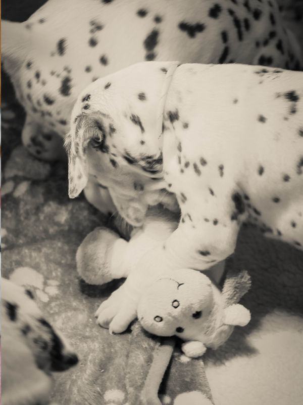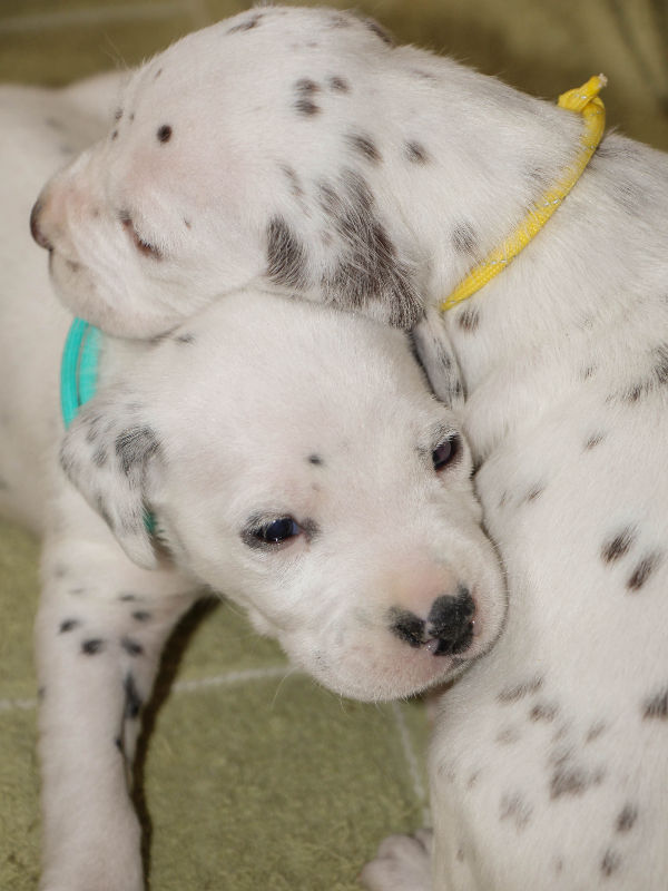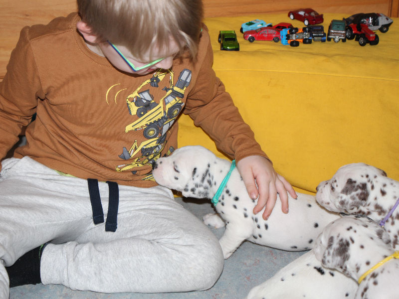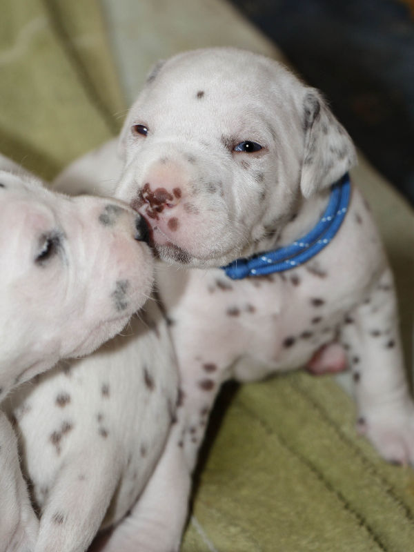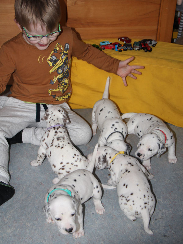 Die Welpen schlabbern ihre Mahlzeiten ordentlich weg. Sie sind sehr ausgeglichen und schon durchaus folgsam.