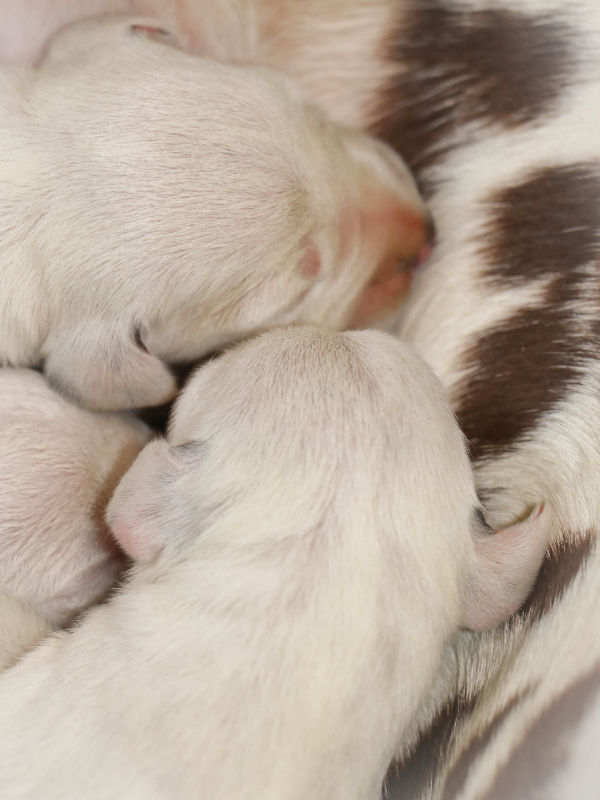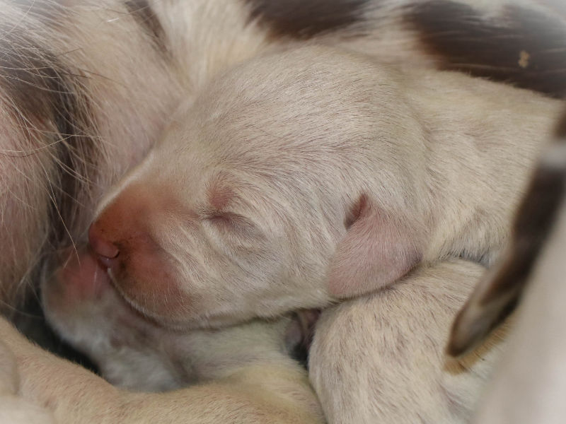Molly ist die Mama unseres aktuellen Wurfes, sie hinterlässt 7 kleine Welpen. Heute sind sie grad mal 11 Tage alt.