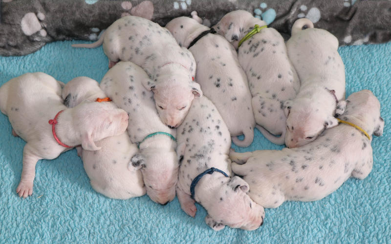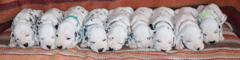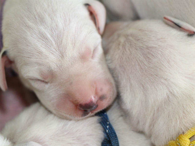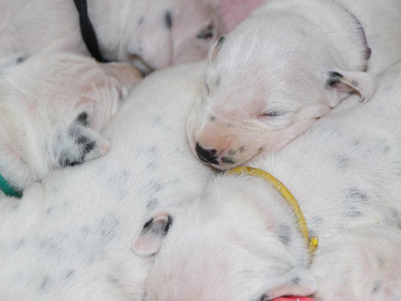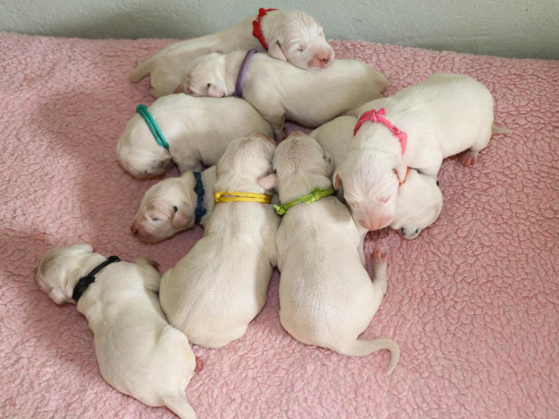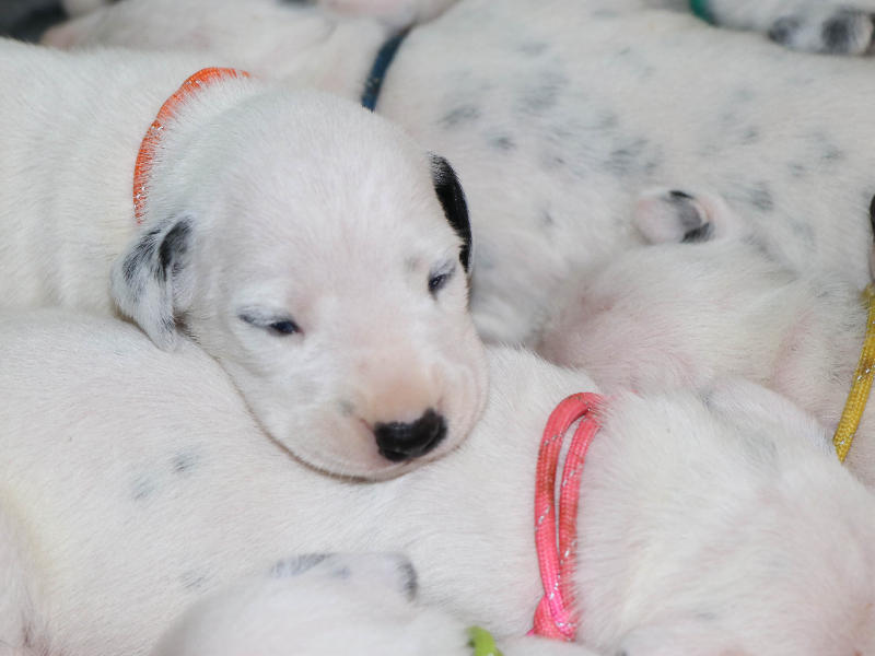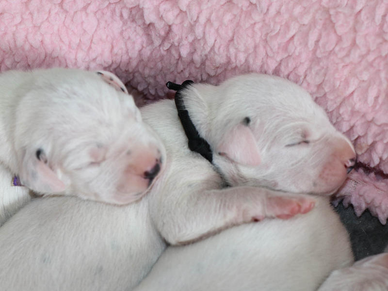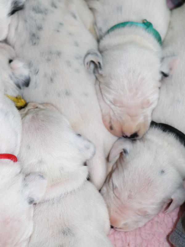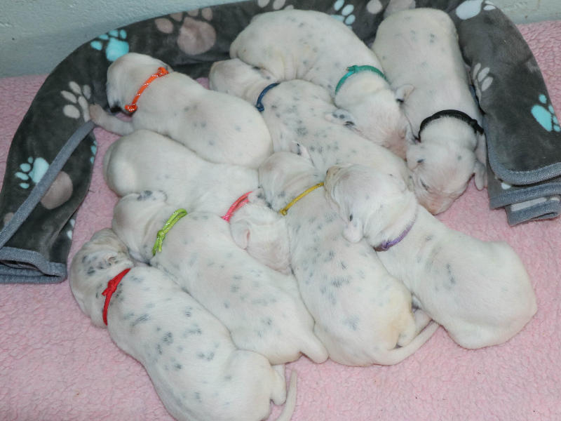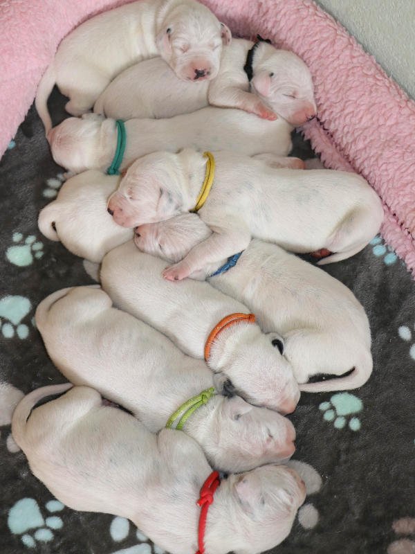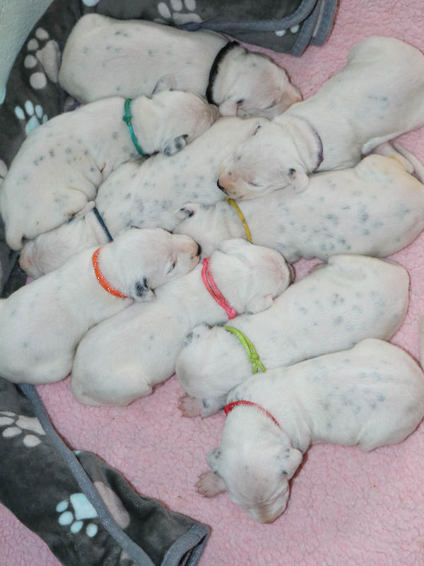 Heute, 12.8........ man kann die schwarzen Näschen deutlich erkennen, die Welpen entwickeln sich prima und nehmen alle gut zu.