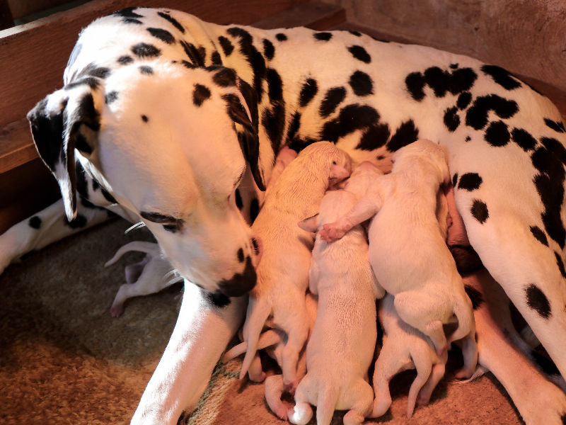 Zora hat nach wie vor gut Milch und kümmert sich bestens um die Welpen.