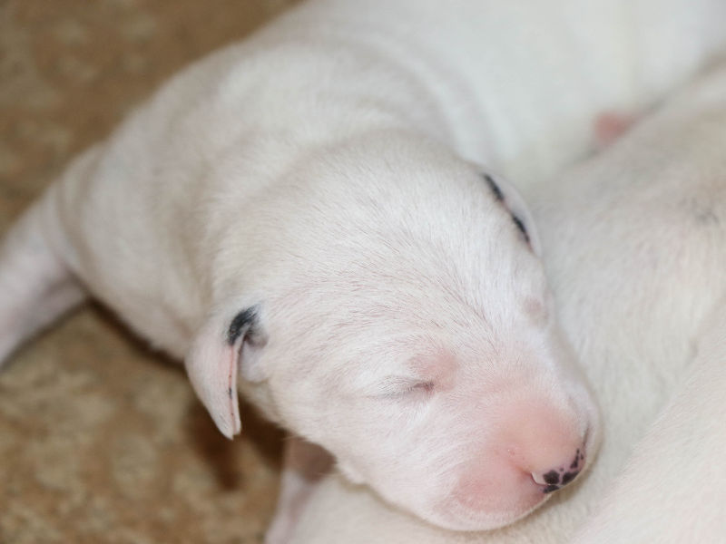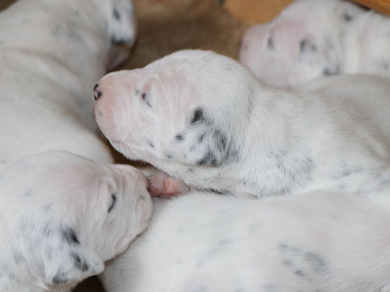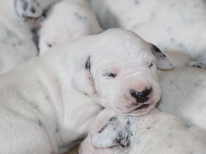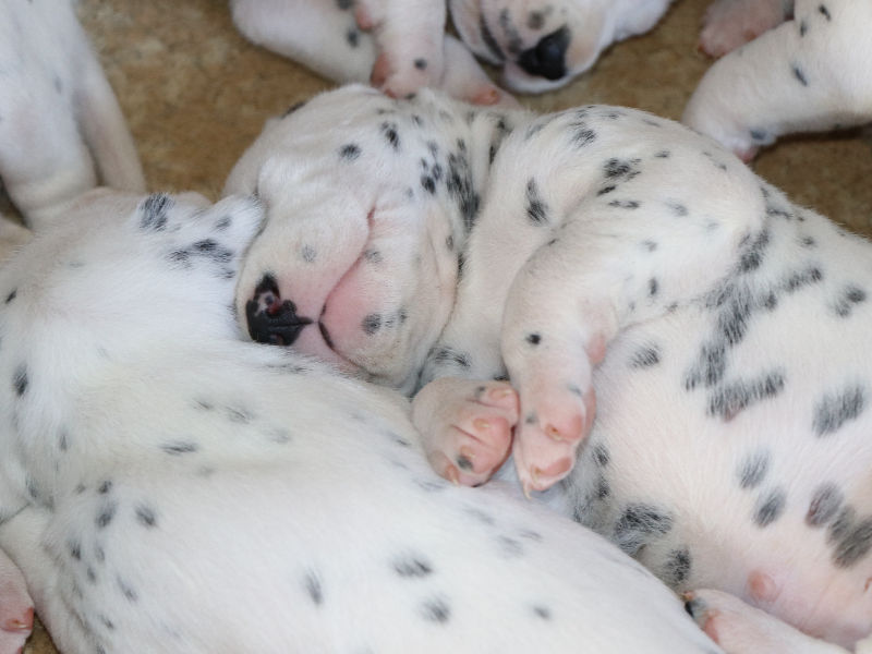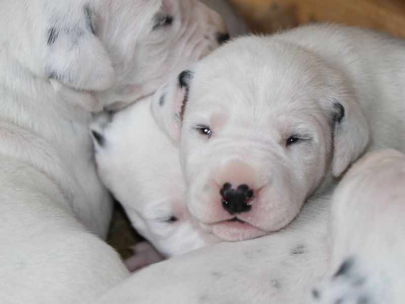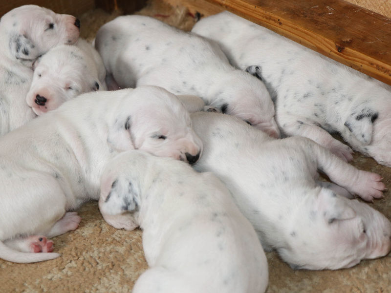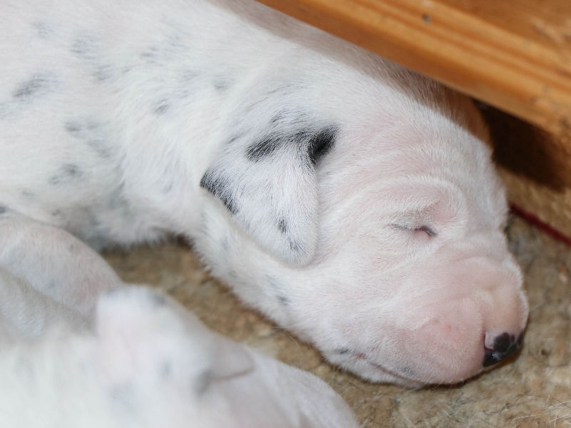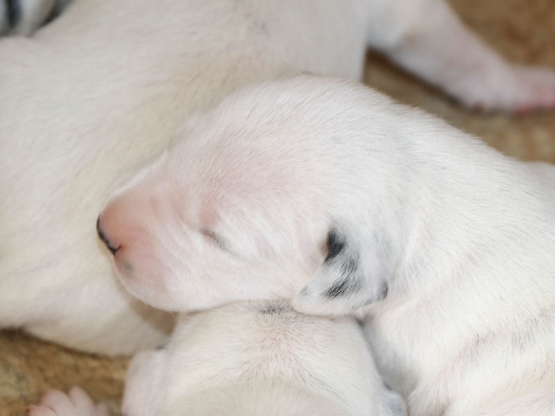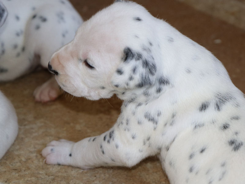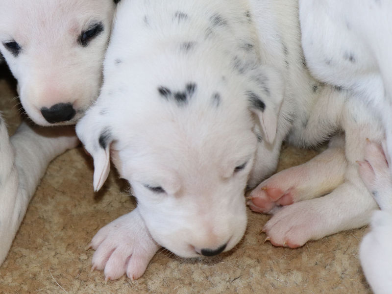 Die Wuffis sind heute 17 Tage alt, ... mittlerweile sieht man die Punkte,