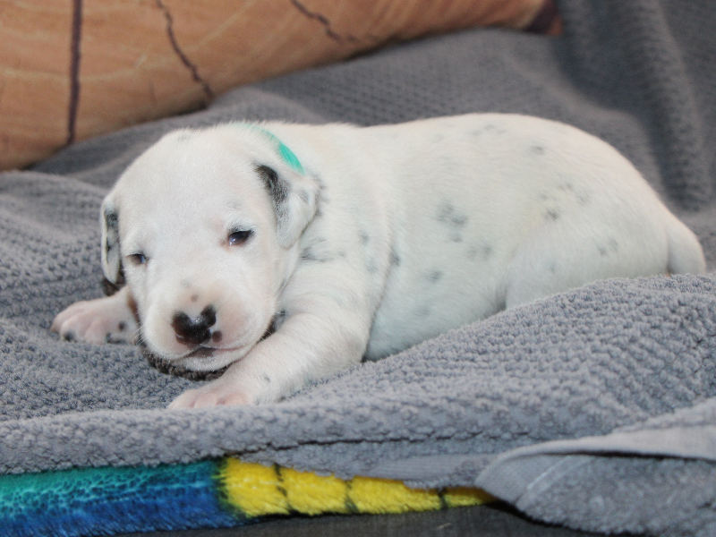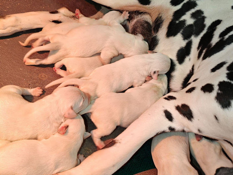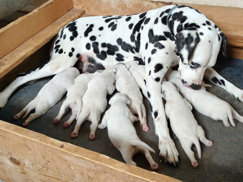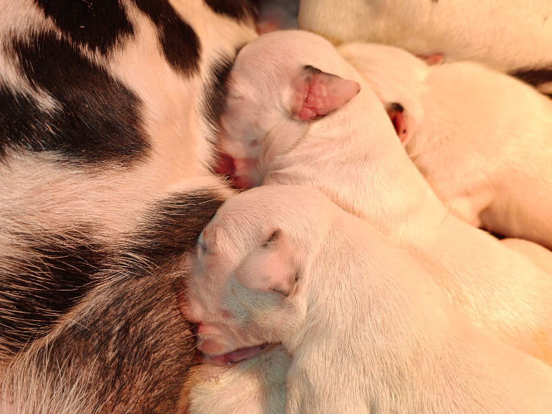Zora kümmert sich wunderbar um die Welpen und hat super viel Milch.