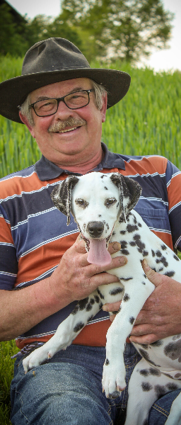Wir sind bestrebt, ruhige, gesunde, wesensfeste Dalmatiner zu züchten. Um unser Haus herum sind nur Wiesen und Wälder, auf denen sich unsere Hunde frei bewegen können.